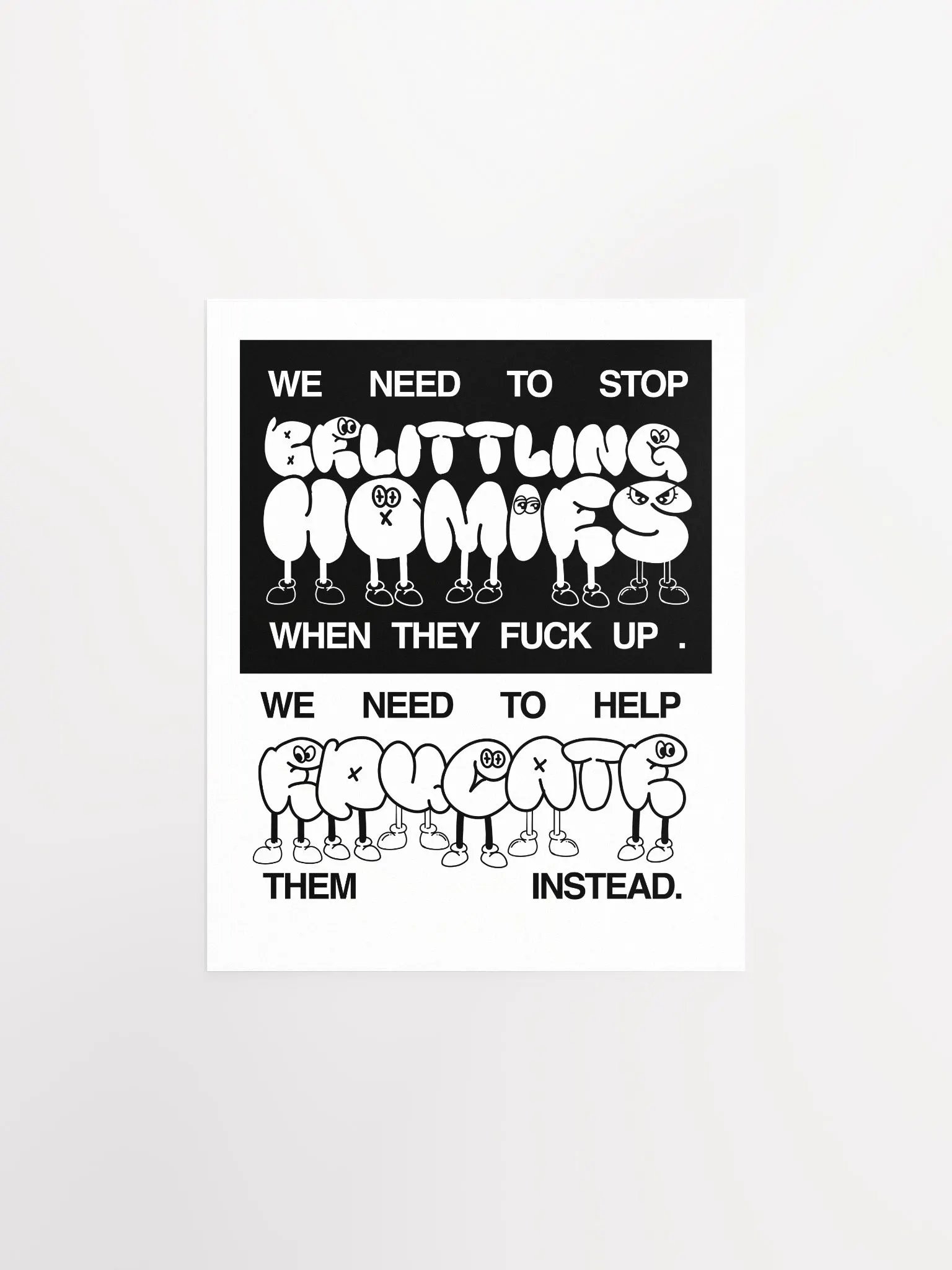 "we need to stop belittling homies" on premium museum-quality poster, made from thick matte paper.